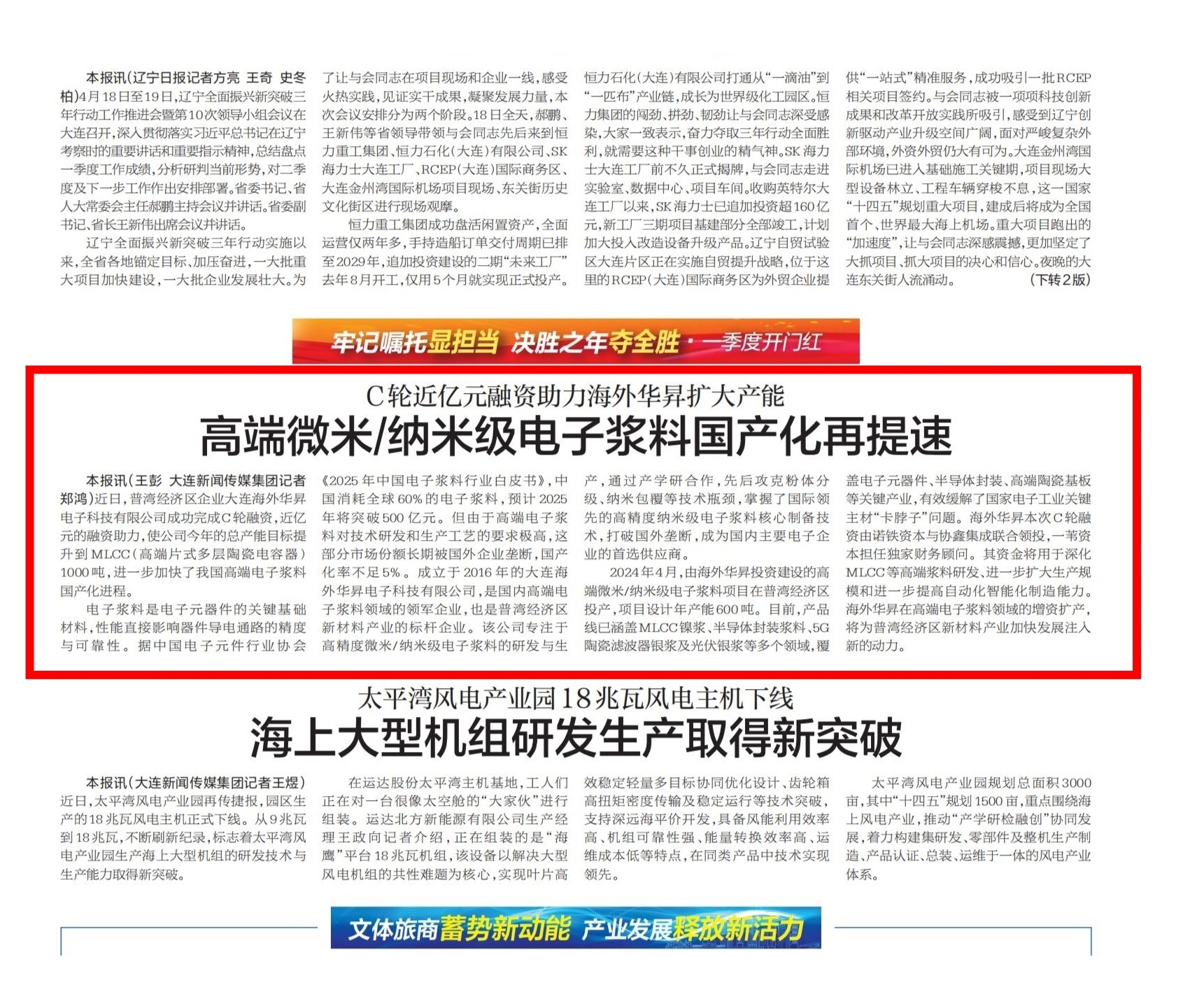 大連海外華昇電子科技有限公司(簡(jiǎn)稱“海外華昇”)于2016年4月成立,注冊(cè)資本7940萬元,是一家專業(yè)從事高精度、微米/納米級(jí)電子漿料研發(fā)、生產(chǎn)和銷售的高新技術(shù)企業(yè)。目前,海外華昇已完成實(shí)際投資超2億元,建成大連總公司、無錫子公司、東莞分公司、上海子公司(上海正銀)、嘉興子公司(浙江納沛)、肇慶子公司、淮北子公司和日本子公司,擁有國(guó)際領(lǐng)先的電子漿料精益生產(chǎn)線,設(shè)備400臺(tái)(套),設(shè)計(jì)年產(chǎn)能1000噸,設(shè)計(jì)產(chǎn)值30億元。